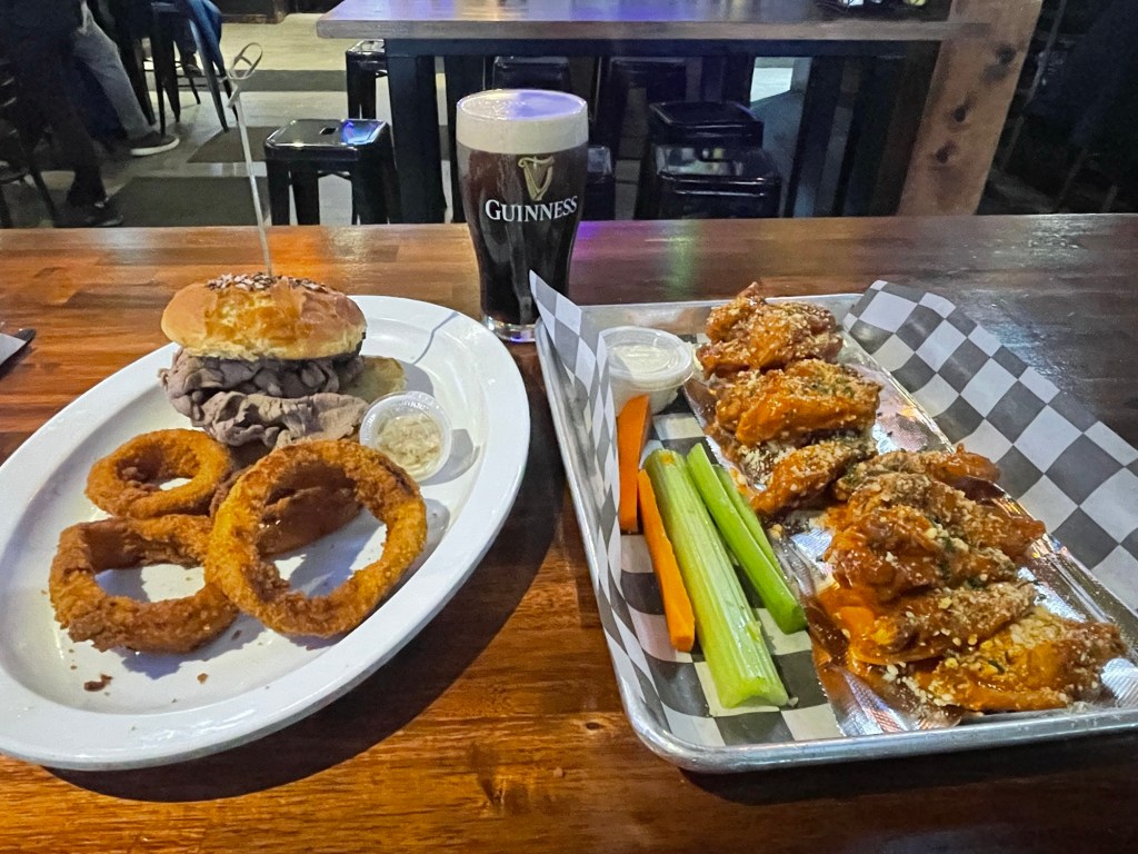 Next stop was to Key Bank Centre to check out the first slate of games. The afternoon session included 2 games the first of which was South Florida vs Louisville. For my first March Madness game in person it definitely lived up to the hype as Louisville barely held off a comeback from South Florida while catching some of the action of the other games going on around the country on the arena JumboTron. The second game featured Michigan St vs North Dakota. This game was a little bit more lopsided so I had left just after the half to continue my journey in finding Buffalo’s best chicken wings. Enter Doc Sullivan’s – An Irish Bar in the South Side of the city. Here I settled in as was very welcoming and energized with the games being shown on multiple TV’s. I decided on the Garlic Parmesan wings and a Beef on Weck. Beef on Weck is another local staple which consists of a Roast Beef sandwich on a Kimmelweck roll with horseradish. I was happy in my decision as the game was a bit of a blowout and I relished the chance to try another of Buffalo’s highly ranked chicken wings. These wings were very good but a close 2nd to the gold standard set my bar bill. I must return to try the Beef on Weck wings however.